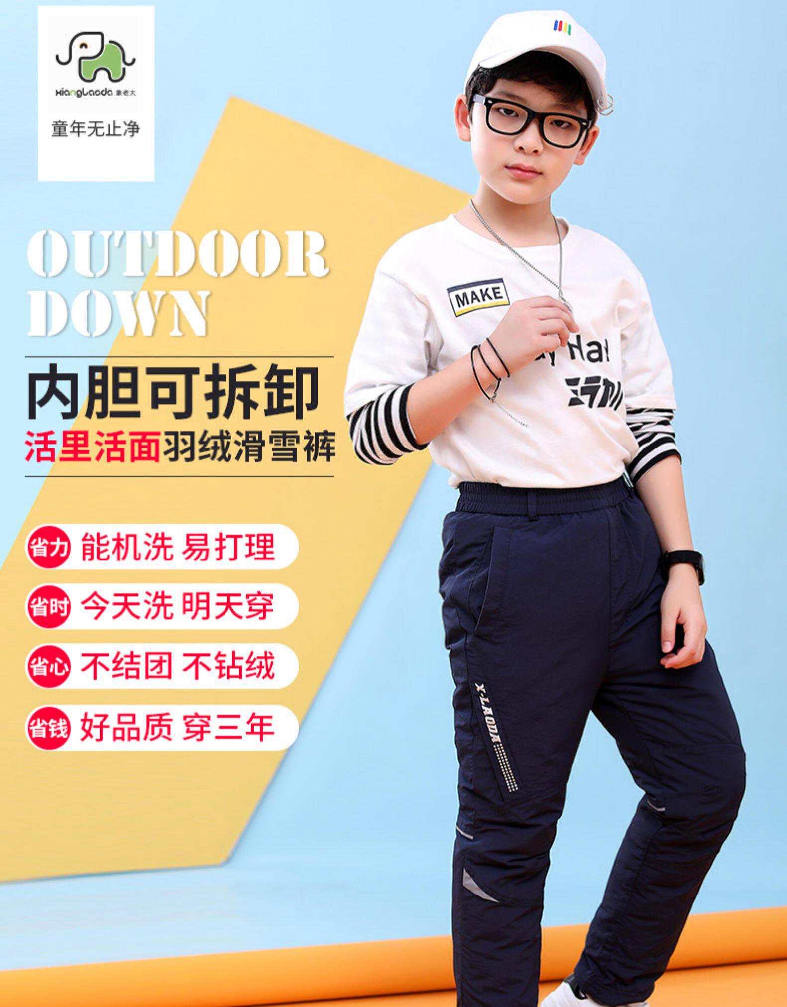 象老大 Детские штаны с пухом для мальчиков, съемный водонепроницаемый лыжный вкладыш, подходит для подростков