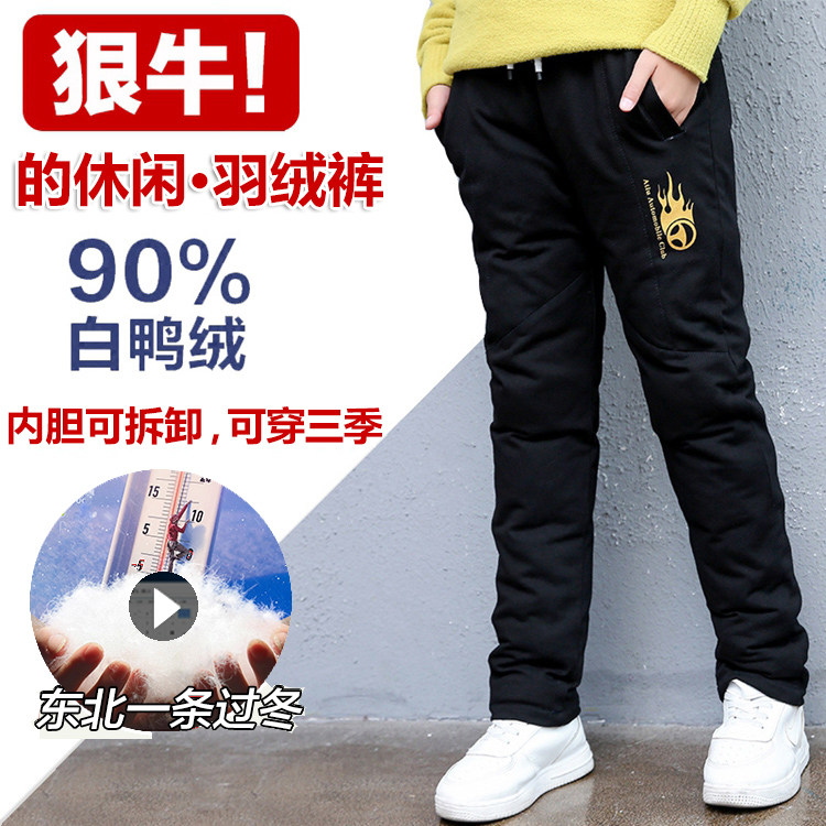 Детские бархатные утепленные зимние штаны с пухом для мальчиков, подходит для подростков, утиный пух, детская одежда
