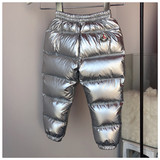 Детские серебряные утепленные удерживающие тепло водонепроницаемые штаны с пухом для мальчиков, высокая талия, утиный пух