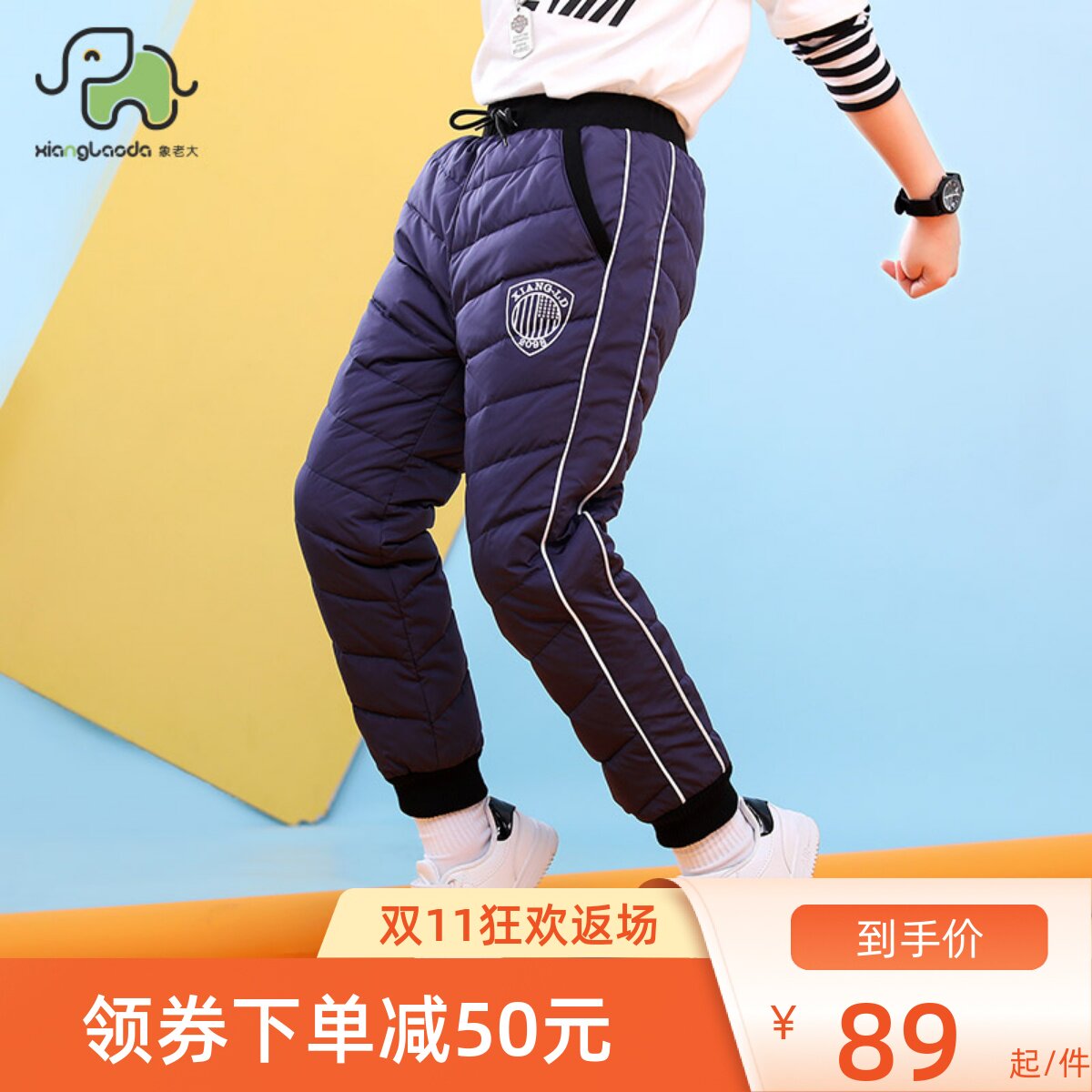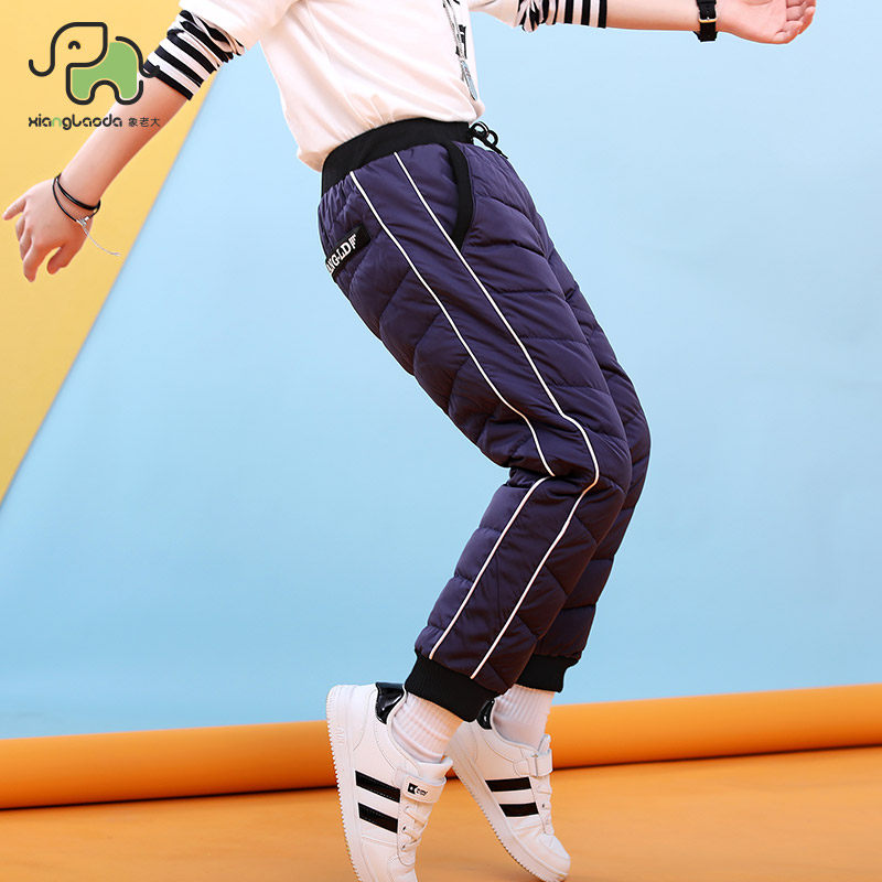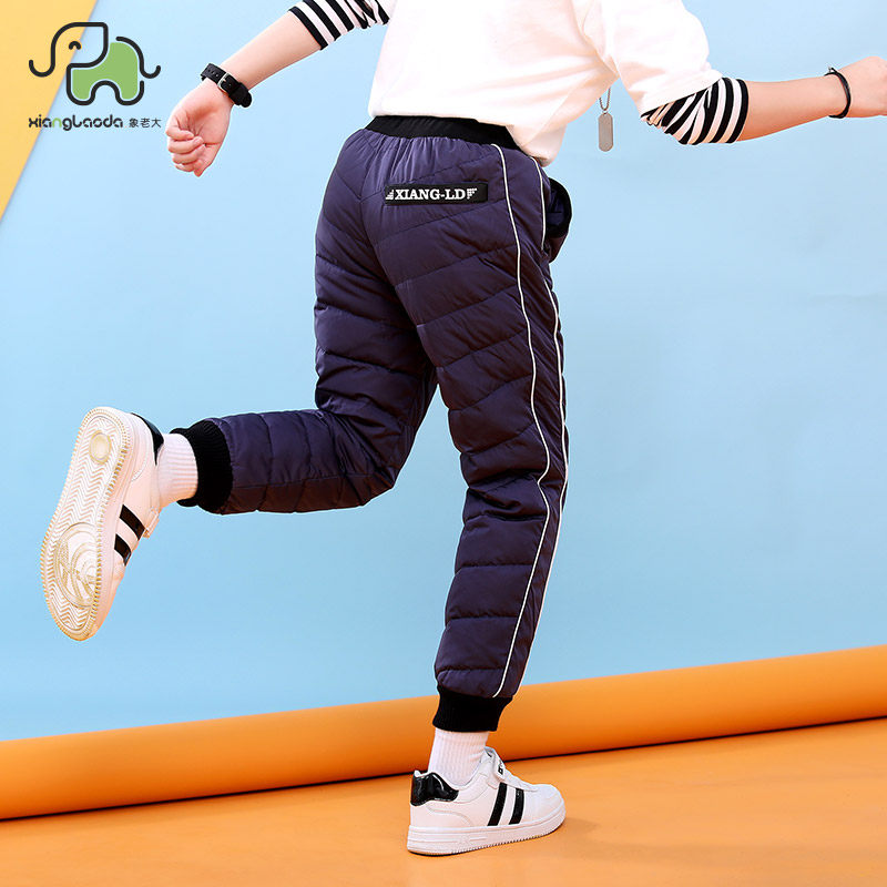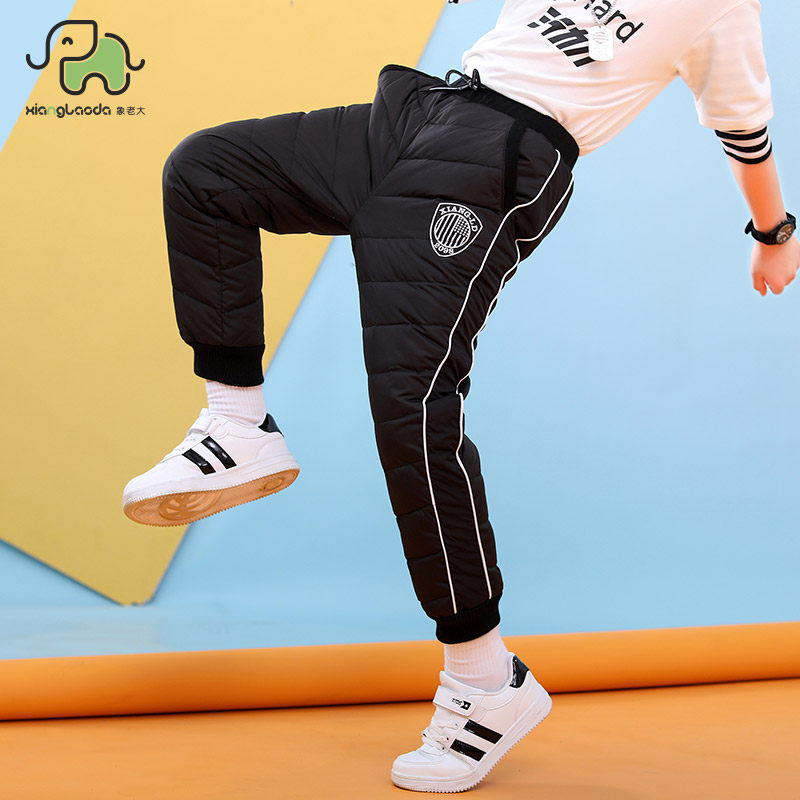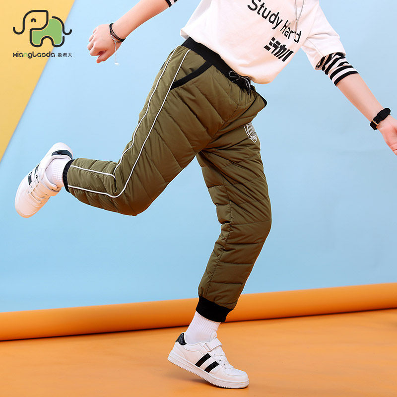 象老大 Утепленные удерживающие тепло детские спортивные штаны для мальчиков с пухом, подходит для подростков, свободный крой