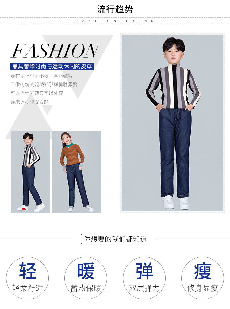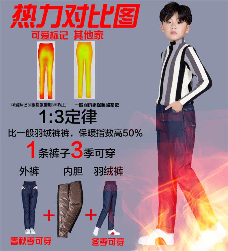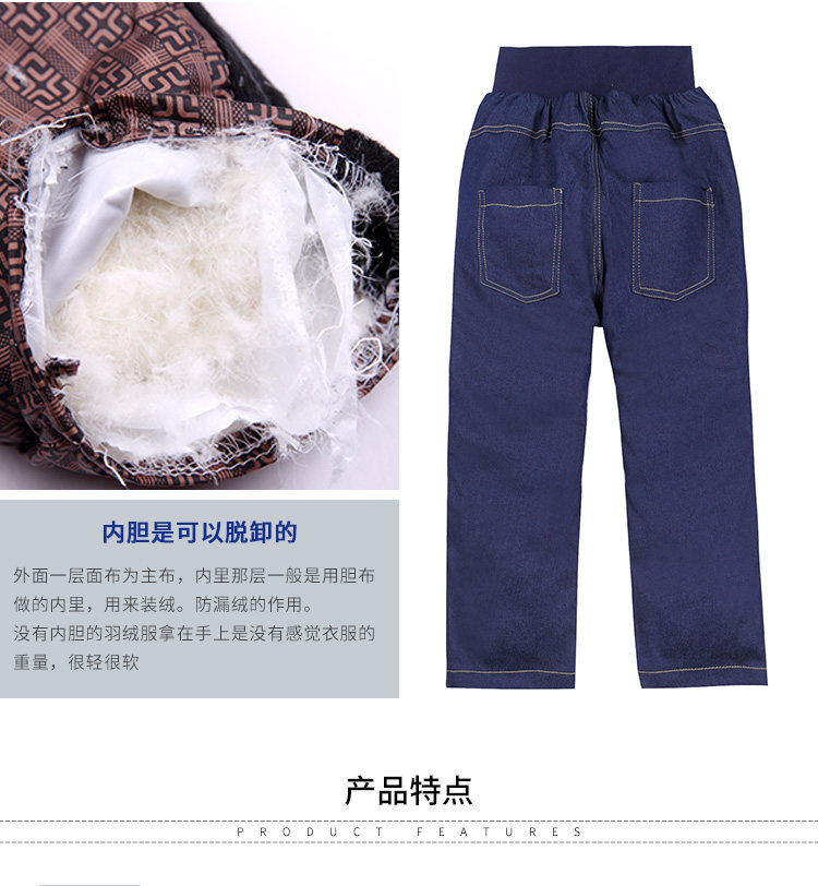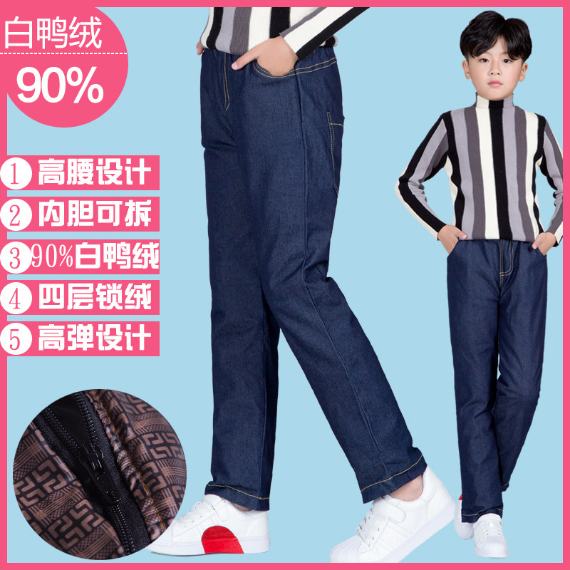 Детские штаны с пухом для мальчиков, джинсовый пуховик, съёмный вкладыш, детская одежда, увеличенная толщина, подходит для подростков