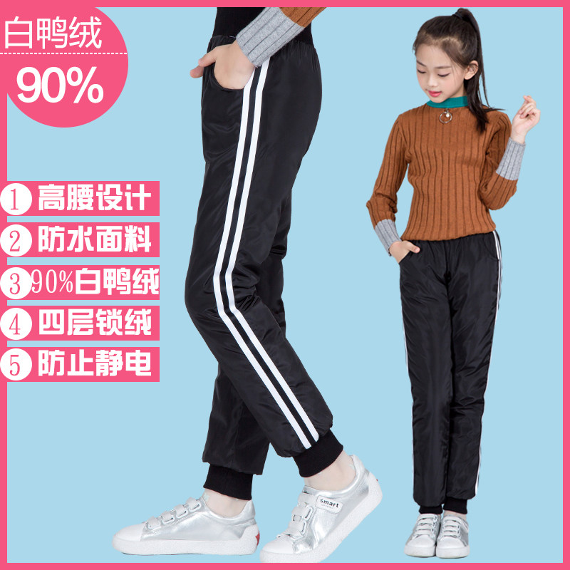 Утепленные бархатные штаны с пухом для мальчиков, детская одежда, подходит для подростков, высокая талия, утиный пух