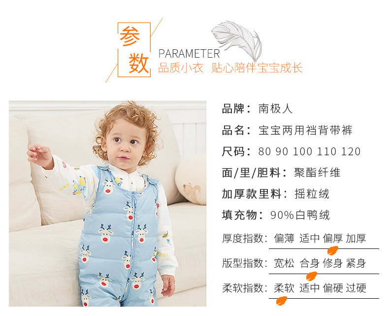 南极人 Слинг с пухом, штаны подходит для мужчин и женщин, утепленный детский пуховик для мальчиков, 1-5 лет