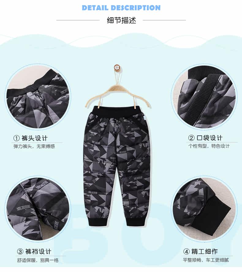 爱儿健 Детские зимние штаны с пухом для мальчиков, увеличенная толщина, подходит для подростков, высокая талия