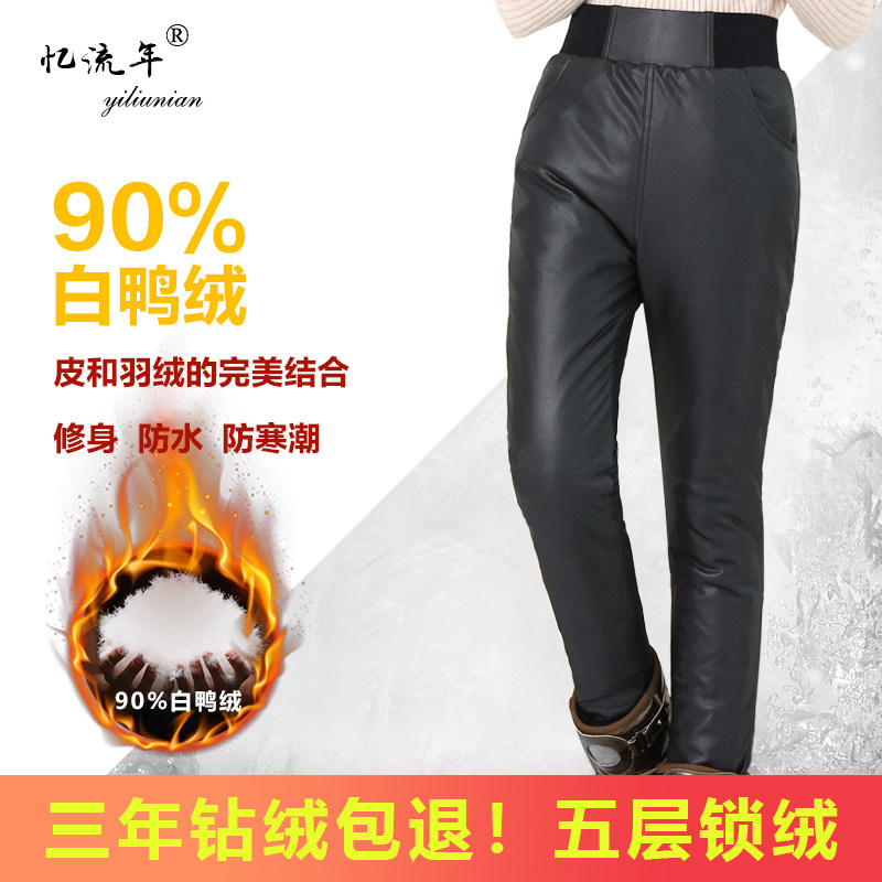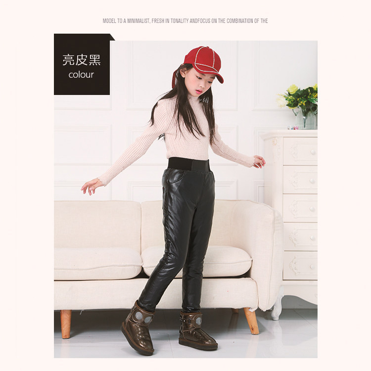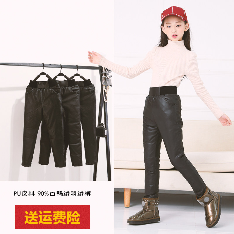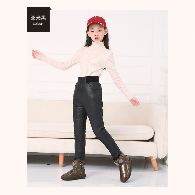 Детские штаны с пухом, полиуретановый бархатный пуховик, подходит для подростков, увеличенная толщина, высокая талия, утиный пух