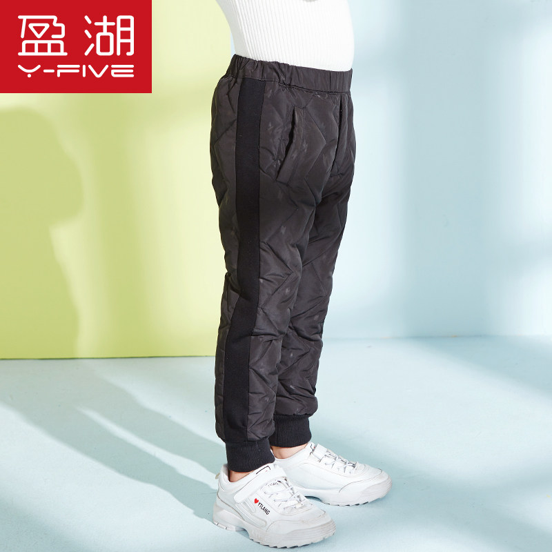 Детские эластичные штаны с пухом для мальчиков, пуховик, увеличенная толщина, подходит для подростков