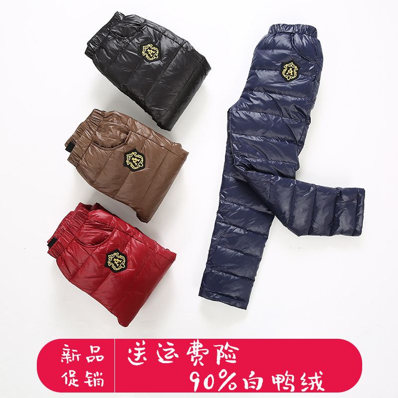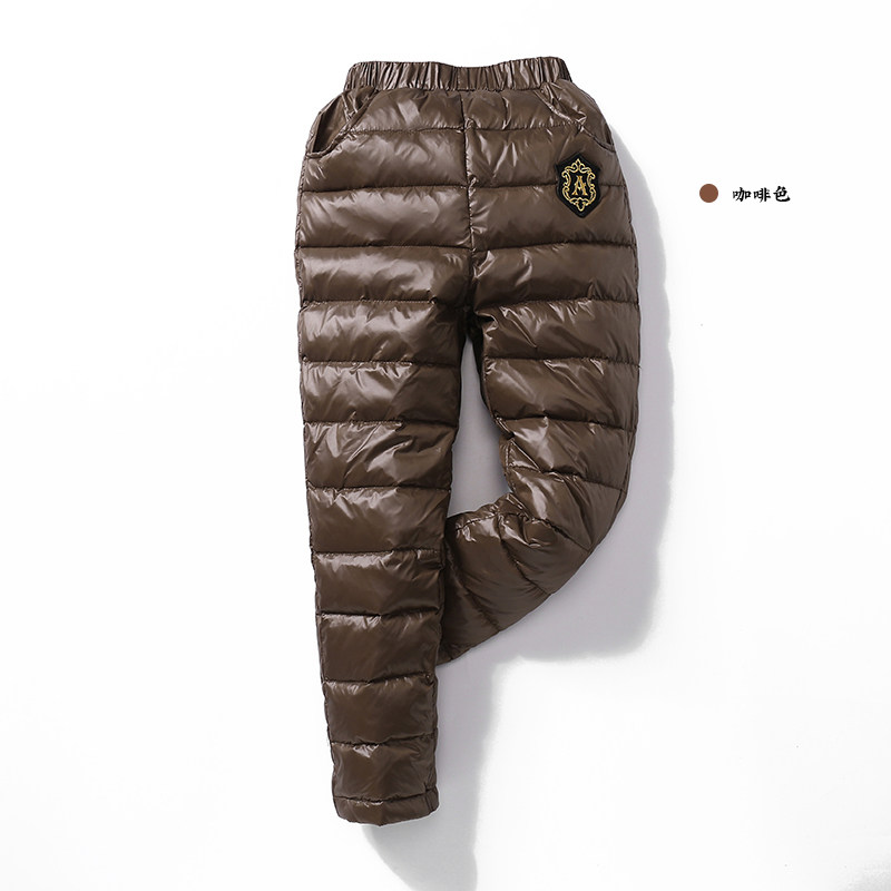 Детские удерживающие тепло штаны для мальчиков с пухом, бархатный детский вкладыш, увеличенная толщина, подходит для подростков, утиный пух