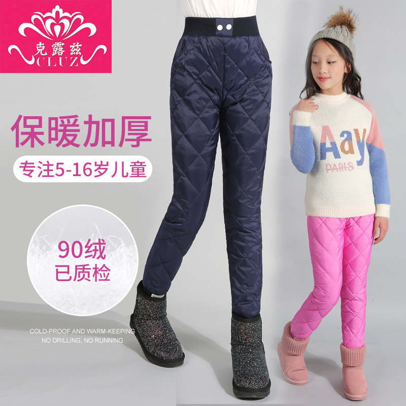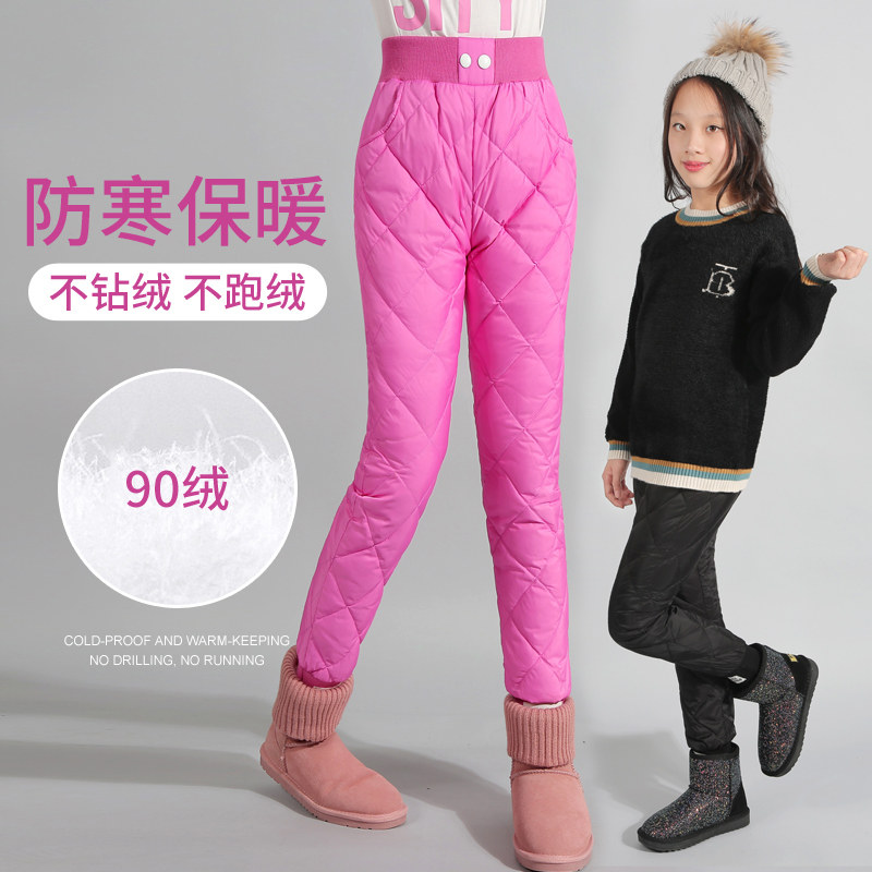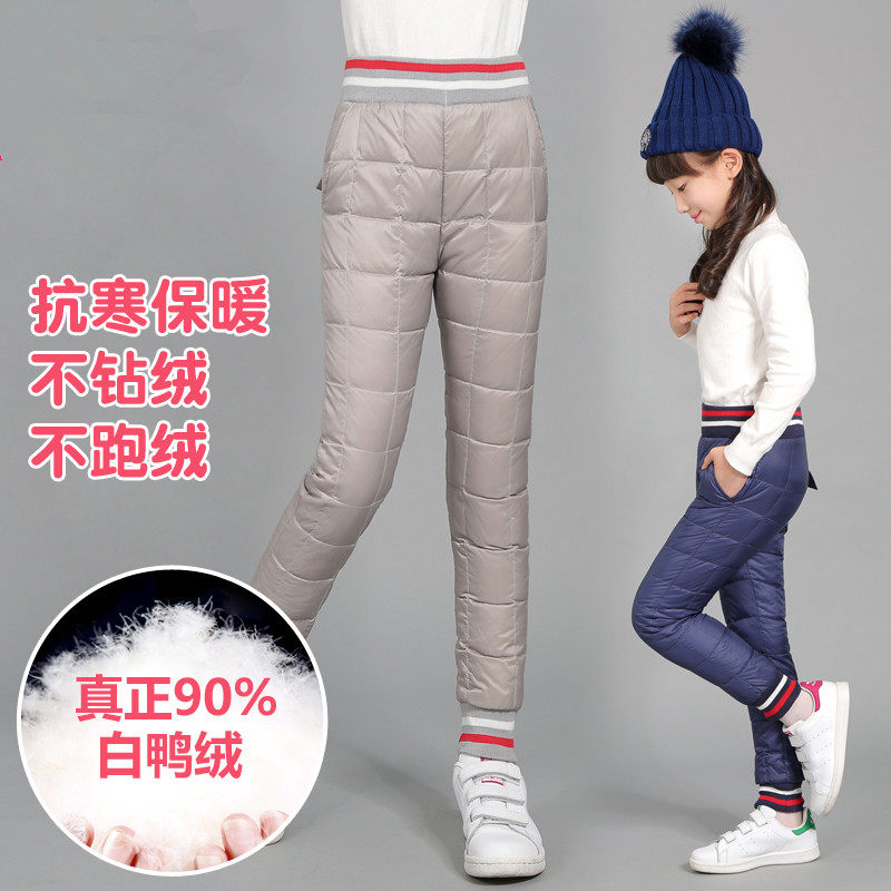 Зимние удерживающие тепло детские штаны с пухом, увеличенная толщина, подходит для подростков