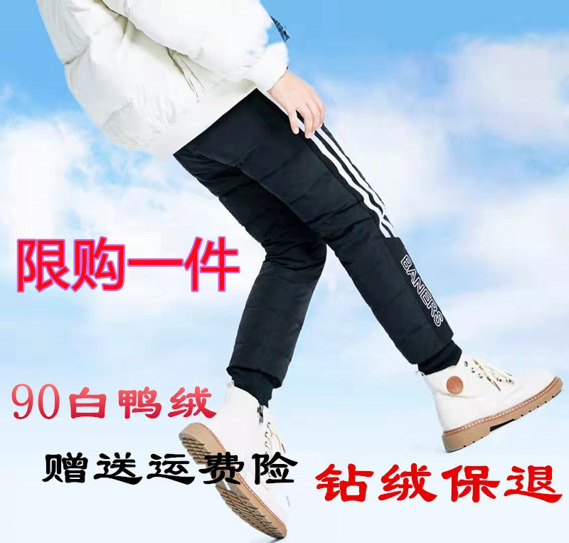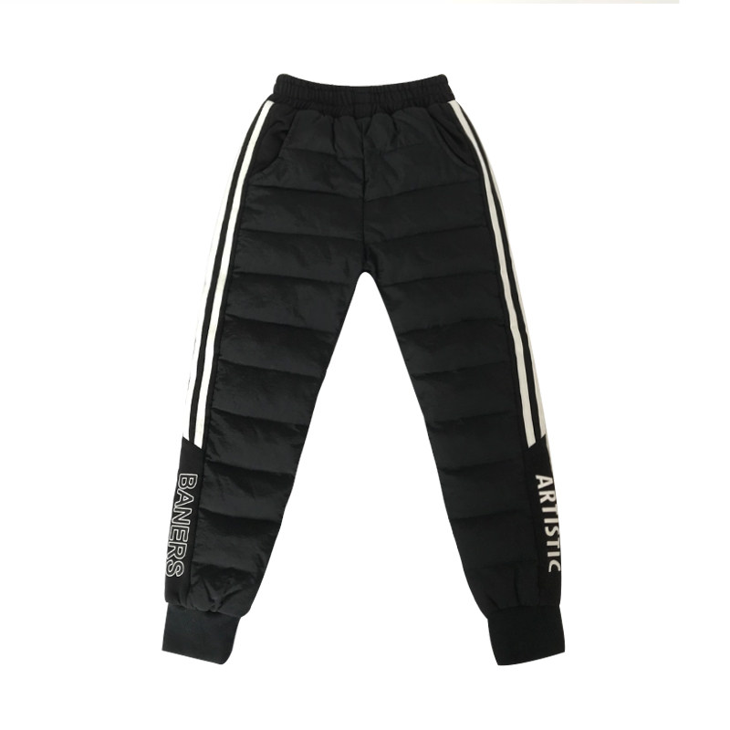 Детские удерживающие тепло зимние бархатные штаны с пухом для мальчиков, высокая талия, утиный пух