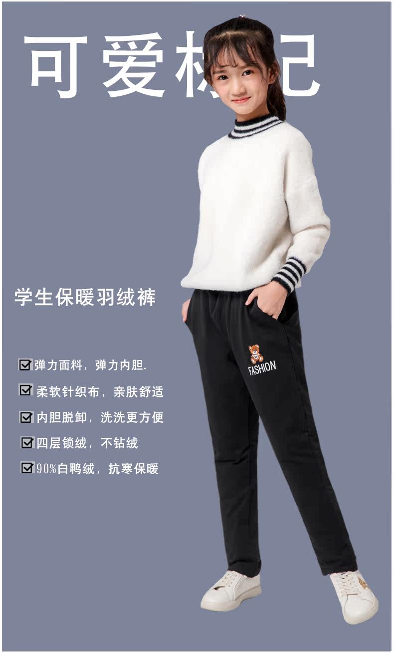 Детские утепленные зимние штаны с пухом для мальчиков, удерживающий тепло съемный бархатный вкладыш, подходит для подростков, утиный пух