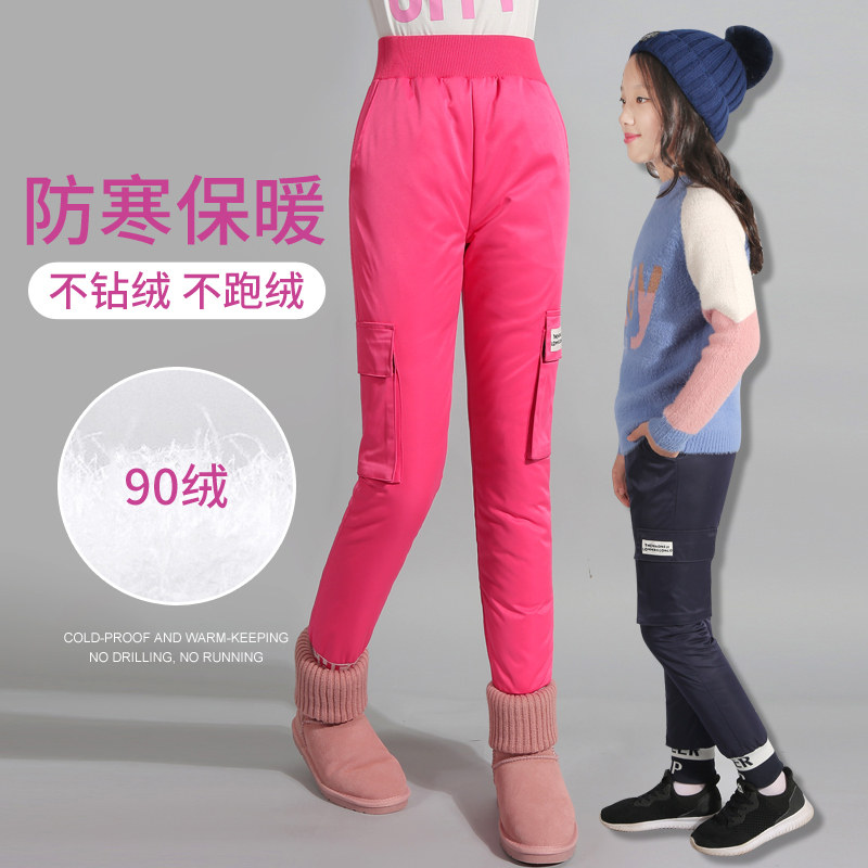 Детские демисезонные бархатные удерживающие тепло штаны с пухом для мальчиков, подходит для подростков, утиный пух, высокая талия