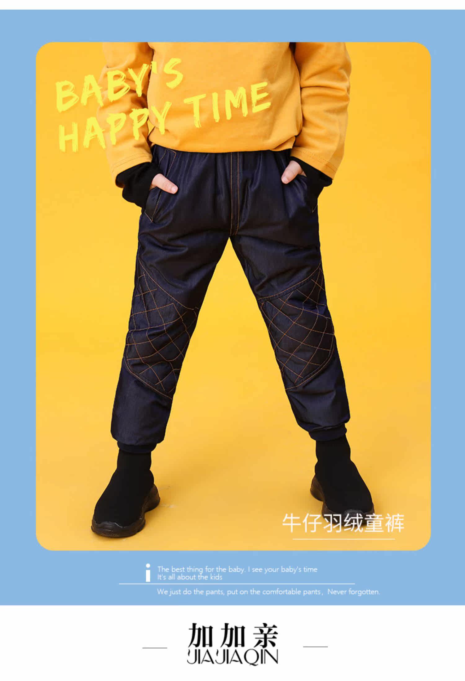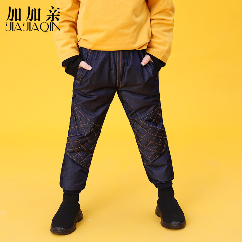 加加亲 Джинсовые штаны подходит для мужчин и женщин с пухом, бархатные детские джинсы с начесом для отдыха, подходит для подростков, утиный пух