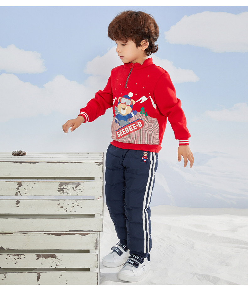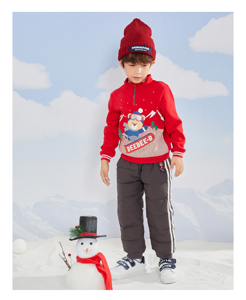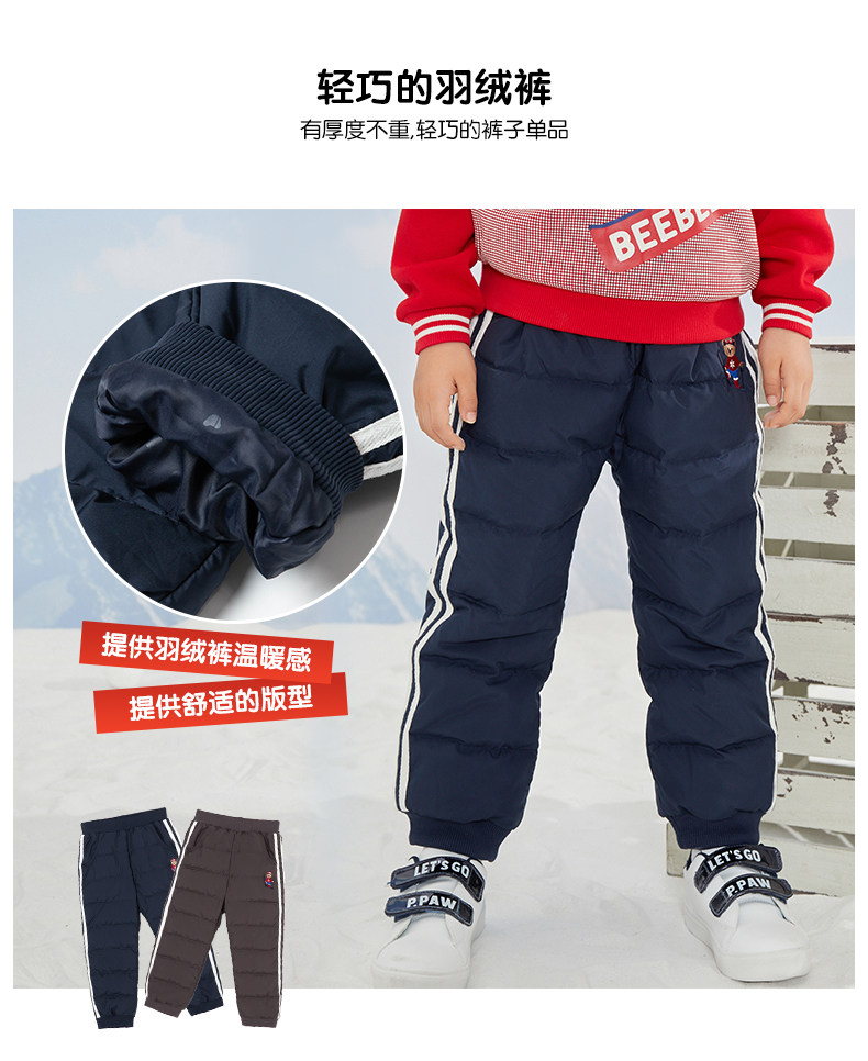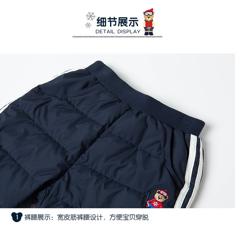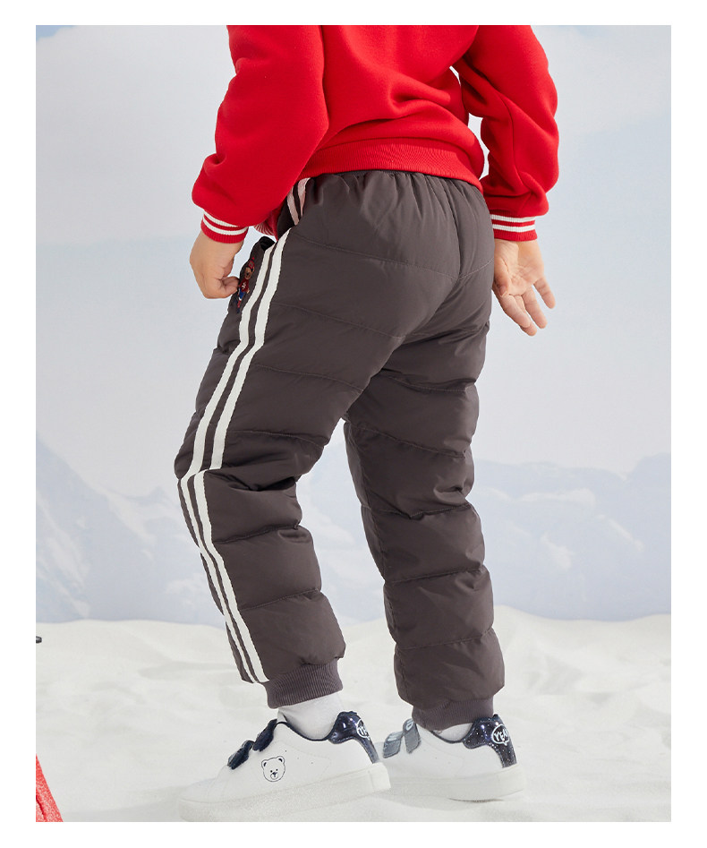 Мультяшные зимние однотонные штаны для мальчиков с пухом, с медвежатами, детская одежда, эластичная талия