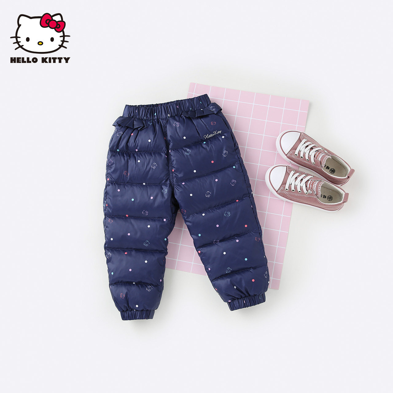 Hello Kitty, удерживающие тепло детские милые штаны с пухом для выхода на улицу, детская одежда, 1-5 лет