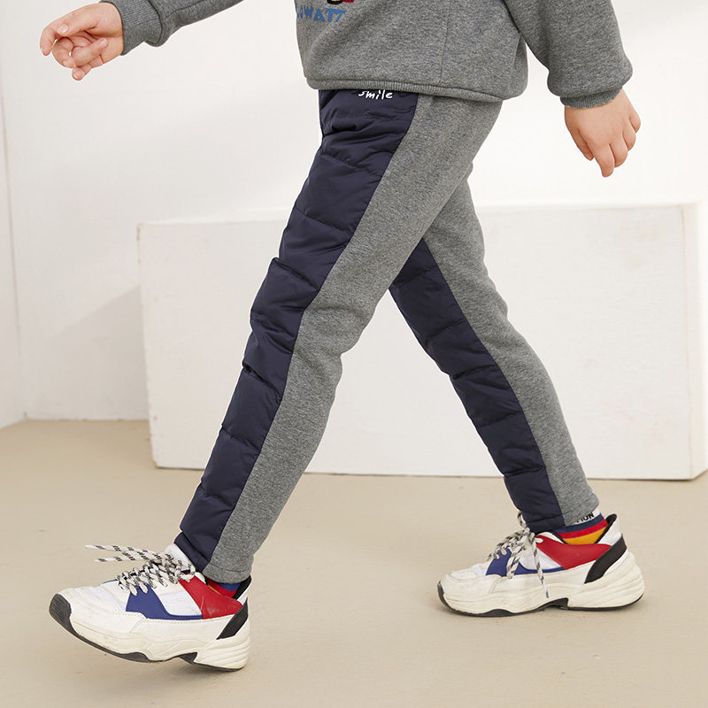 Демисезонные длинные детские бархатные зимние штаны с пухом для мальчиков, утиный пух