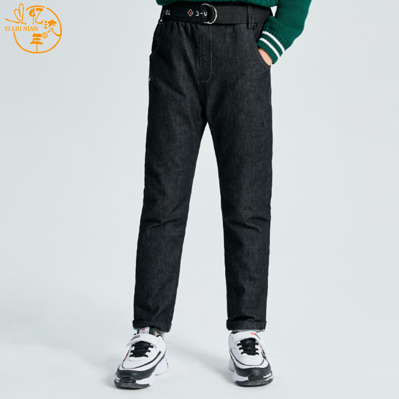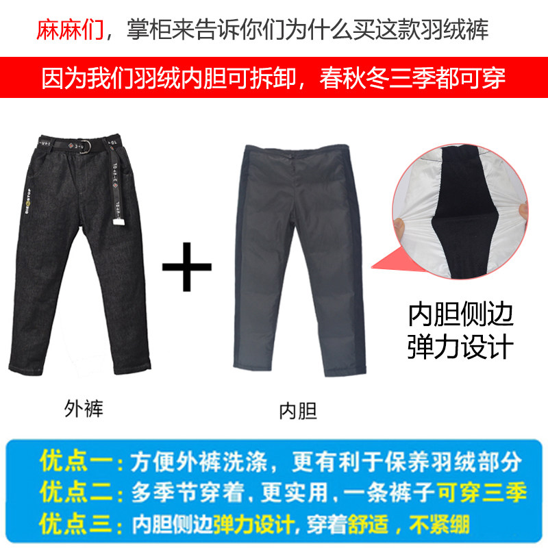 Детские штаны с пухом для мальчиков, форма, съёмный пуховик, удерживающий тепло вкладыш, джинсы, увеличенная толщина, детская одежда, подходит для подростков