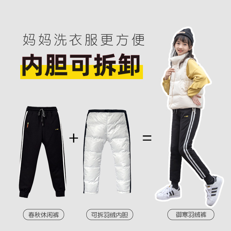 Детские зимние бархатные штаны с пухом, съемный спортивный вкладыш для мальчиков, увеличенная толщина, утиный пух, подходит для подростков