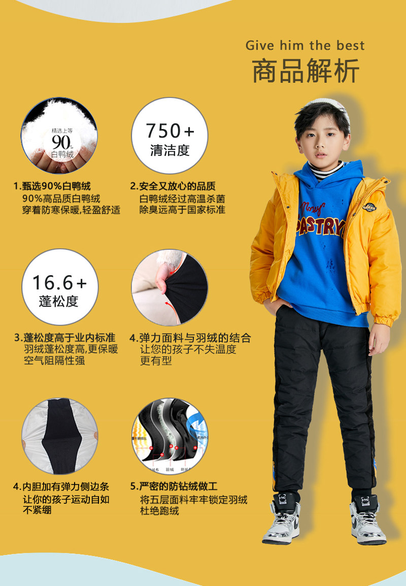 Детские утепленные штаны с пухом для мальчиков, зимняя утепленная форма, бархатный вкладыш, подходит для подростков, утиный пух