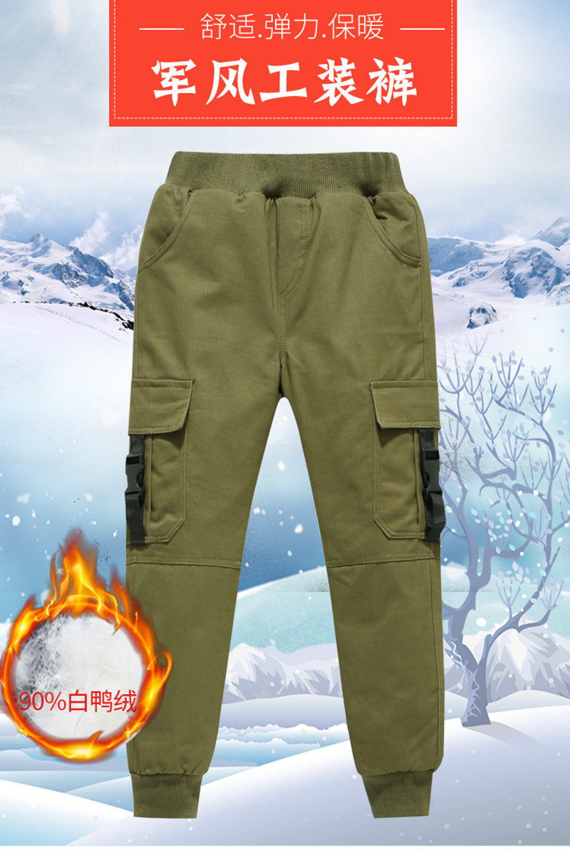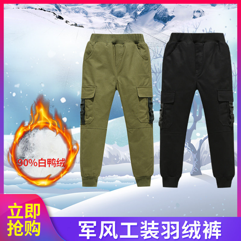 Детские бархатные зимние штаны с пухом для мальчиков, утиный пух, высокая талия