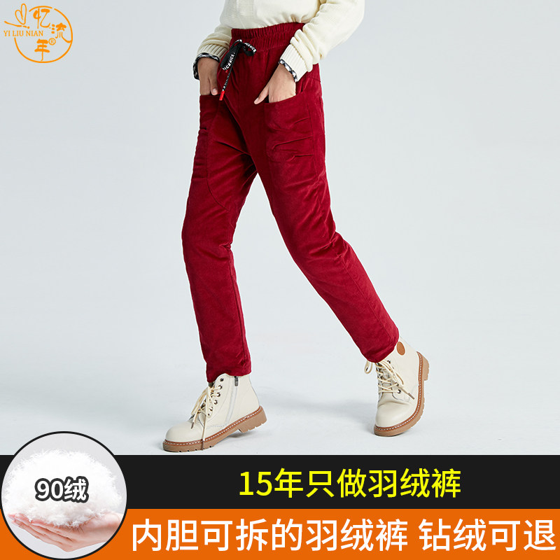 Детские штаны с пухом, съемный вкладыш, пуховик, вельветовая удерживающая тепло форма, высокая талия, увеличенная толщина, подходит для подростков