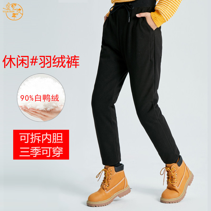 Детские зимние штаны с пухом подходит для мужчин и женщин, съемный удерживающий тепло бархатный вкладыш, подходит для подростков, увеличенная толщина, утиный пух