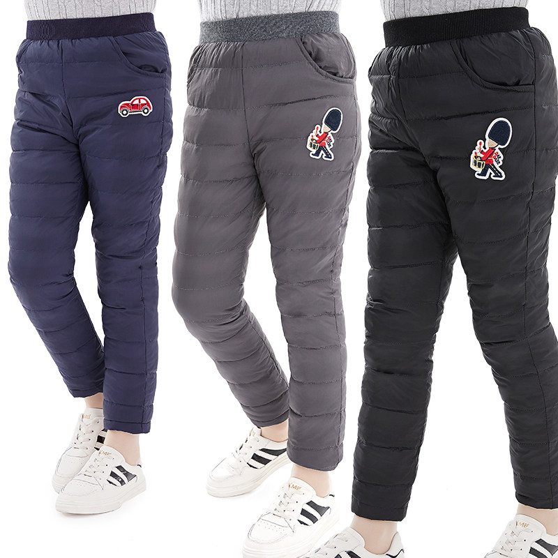 Детские демисезонные удерживающие тепло штаны с пухом для мальчиков, увеличенная толщина, подходит для подростков, свободный крой
