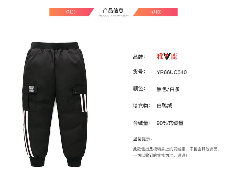 雅鹿 Зимние детские бархатные спортивные штаны с пухом для мальчиков, детская одежда, 2019, утиный пух