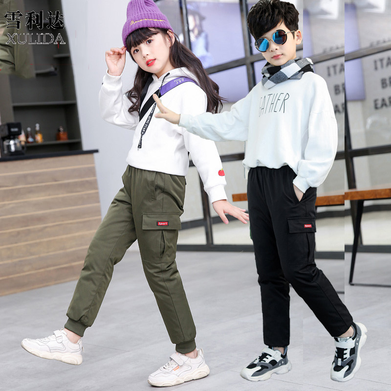 Детские демисезонные утепленные штаны с пухом подходит для мужчин и женщин, подходит для подростков, высокая талия