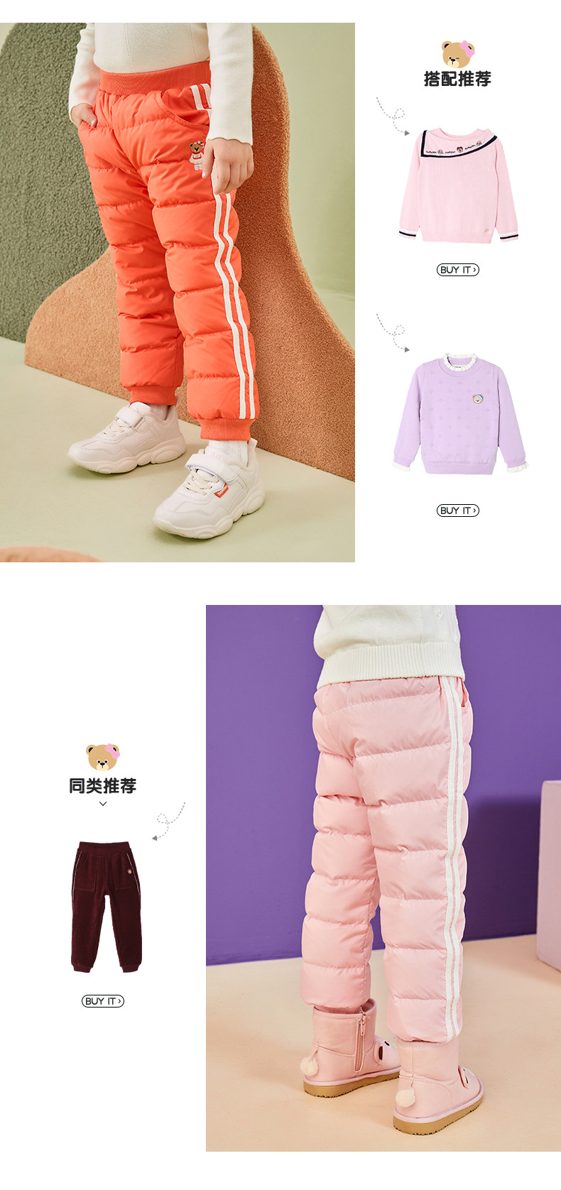Мультяшные удерживающие тепло штаны с пухом, с медвежатами, детская одежда, с вышивкой