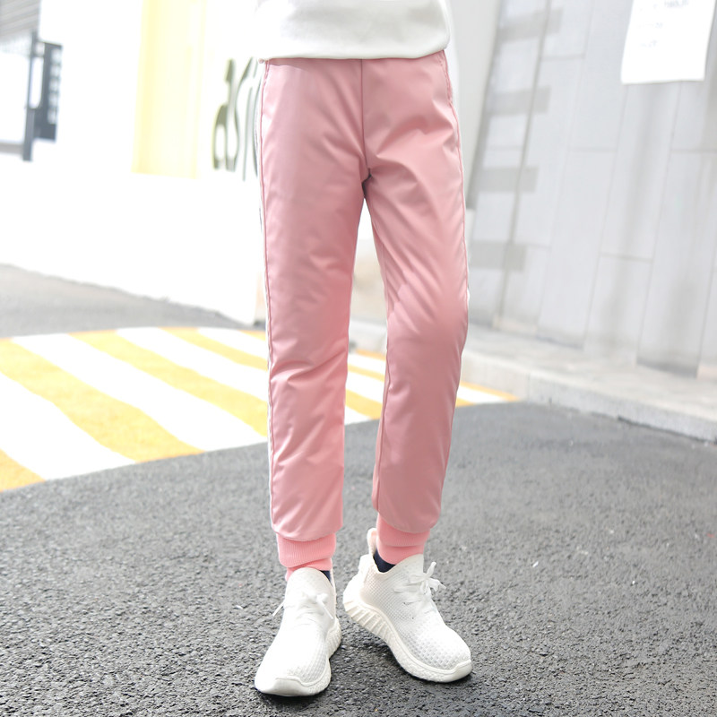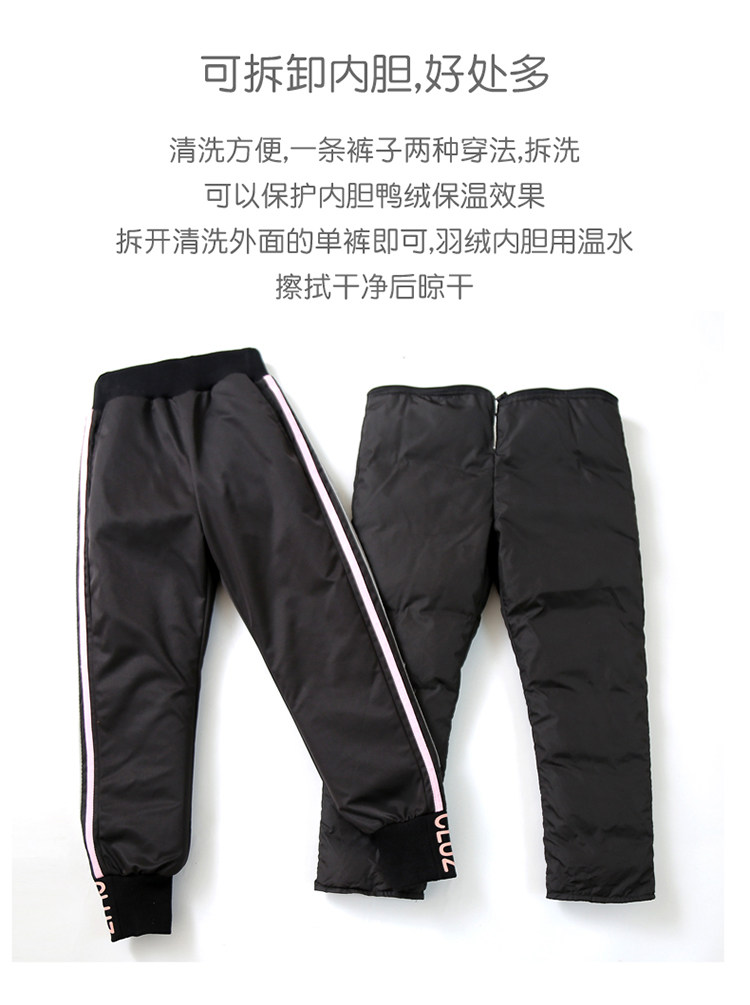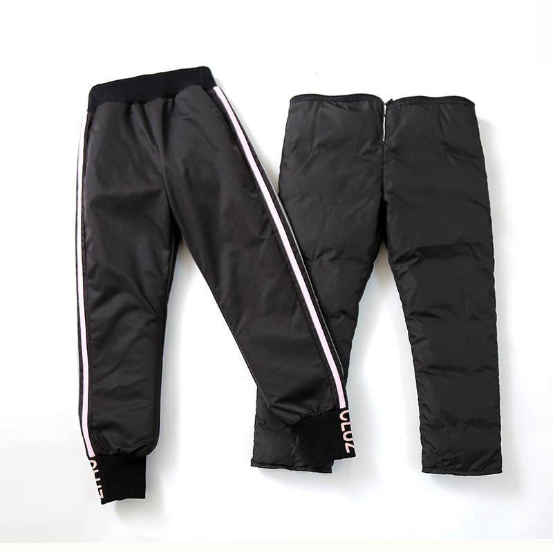 Детские съёмные штаны с пухом, бархатный съемный зимний вкладыш, подходит для подростков, высокая талия, утиный пух