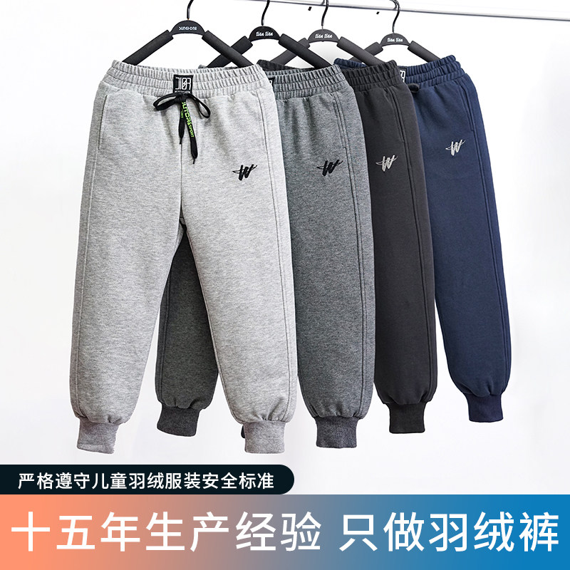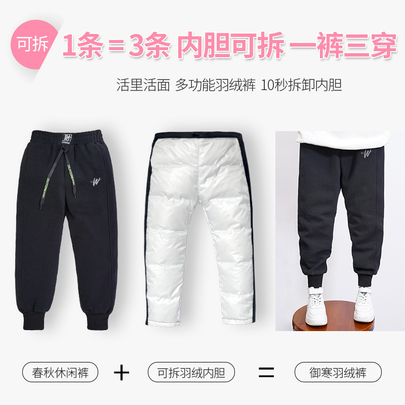 Детские зимние штаны с пухом для мальчиков, бархатный съемный спортивный вкладыш, подходит для подростков, утиный пух