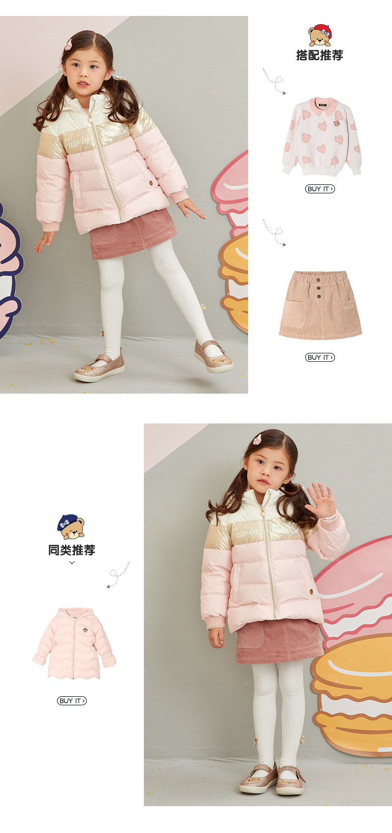 Мультяшный зимний удерживающий тепло модный пуховик, с медвежатами, детская одежда, 2020 года