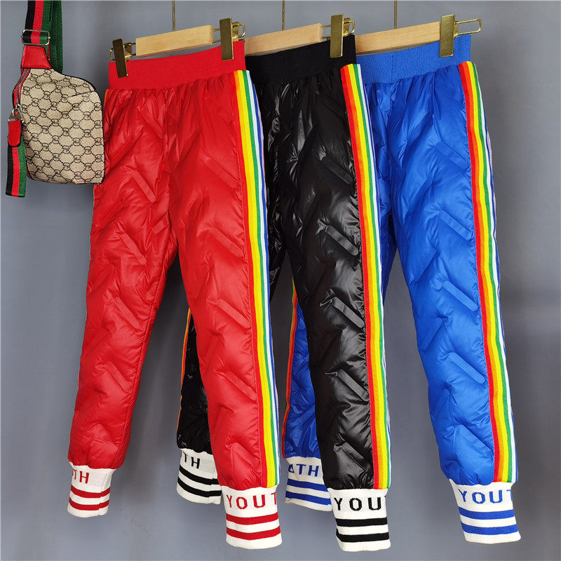 Детские легкие и тонкие бархатные утепленные зимние штаны с пухом подходит для мужчин и женщин, утиный пух, детская одежда