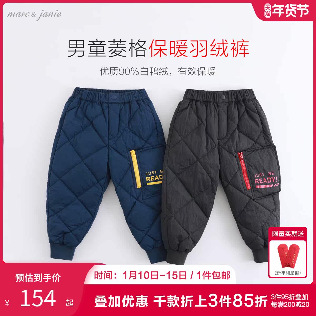 Детский пуховик для мальчиков, детские удерживающие тепло штаны с ромбовидным узором с пухом