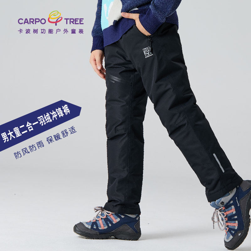 Дорожные осенние демисезонные ветрозащитные водонепроницаемые удерживающие тепло штаны с пухом, детская одежда, подходит для подростков