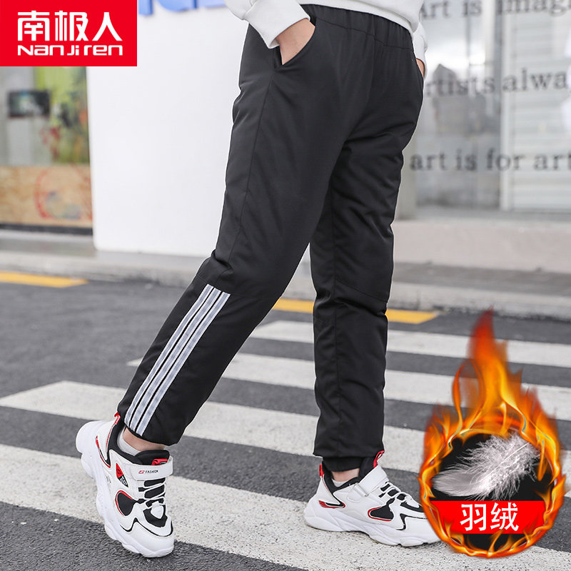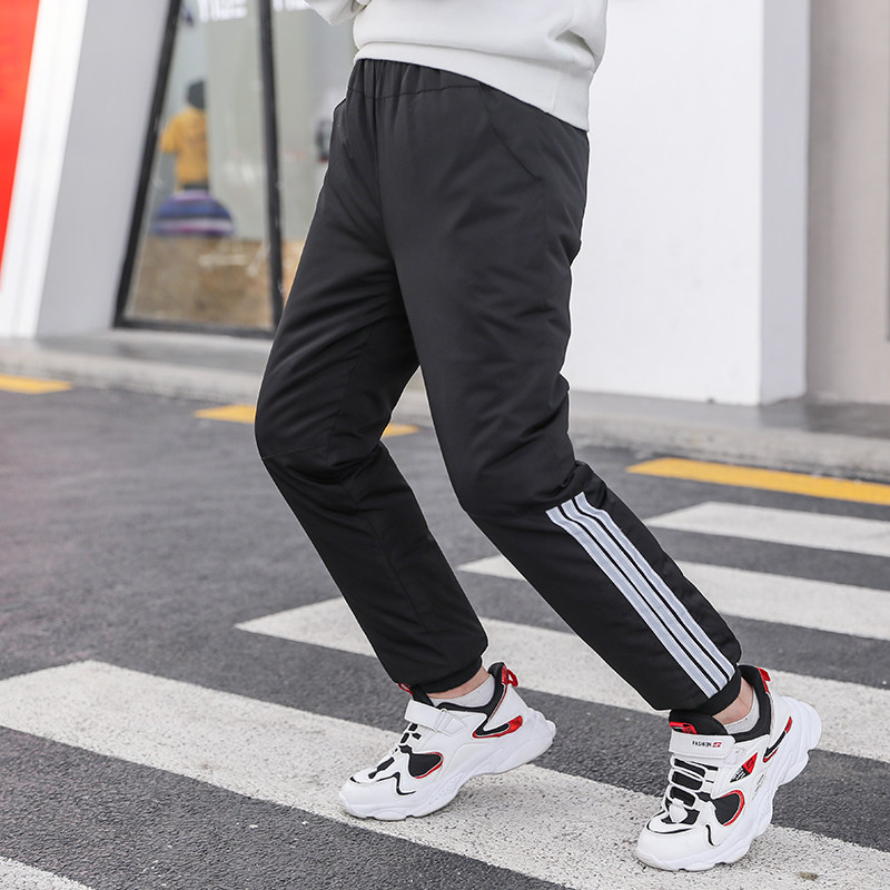 Tmall, детские осенние штаны с пухом для мальчиков, демисезонные удерживающие тепло джинсы с начесом, подходит для подростков, в западном стиле