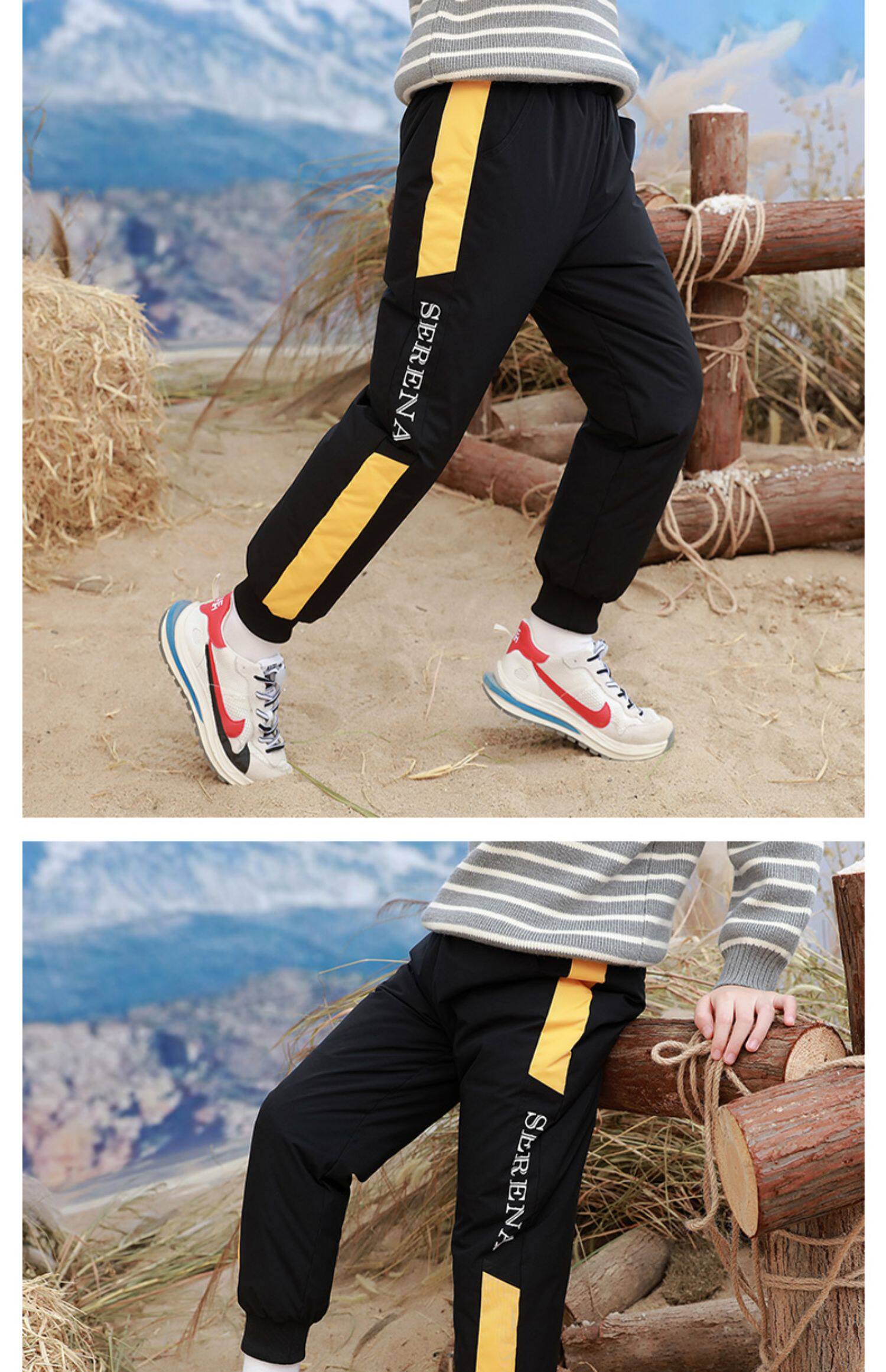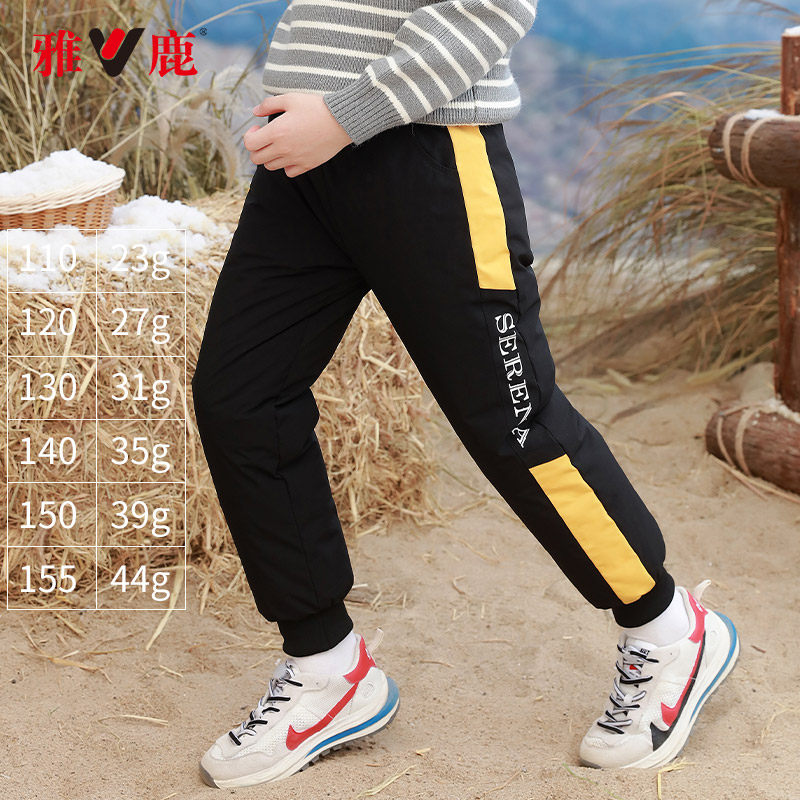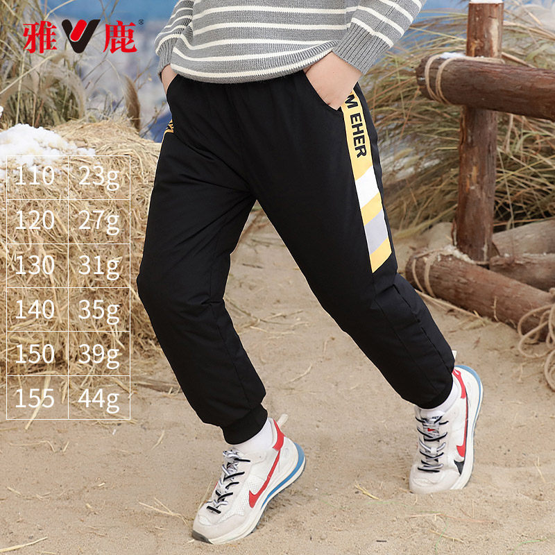 Детские штаны с пухом, удерживающие тепло повседневные брюки для отдыха для мальчиков, увеличенная толщина, подходит для подростков