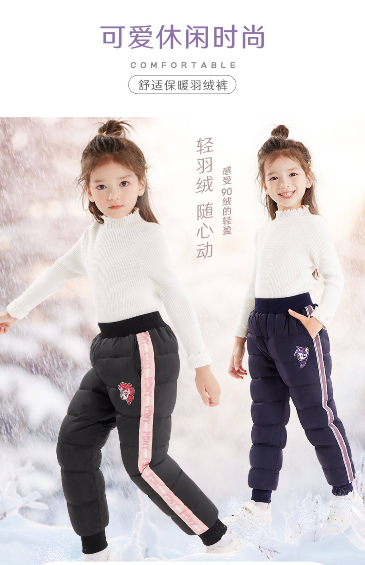 Пони, детские демисезонные штаны с пухом, бархатный легкий и тонкий вкладыш, подходит для подростков, утиный пух