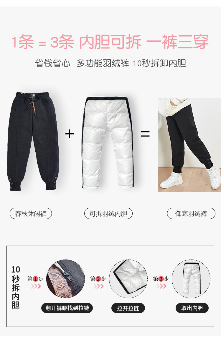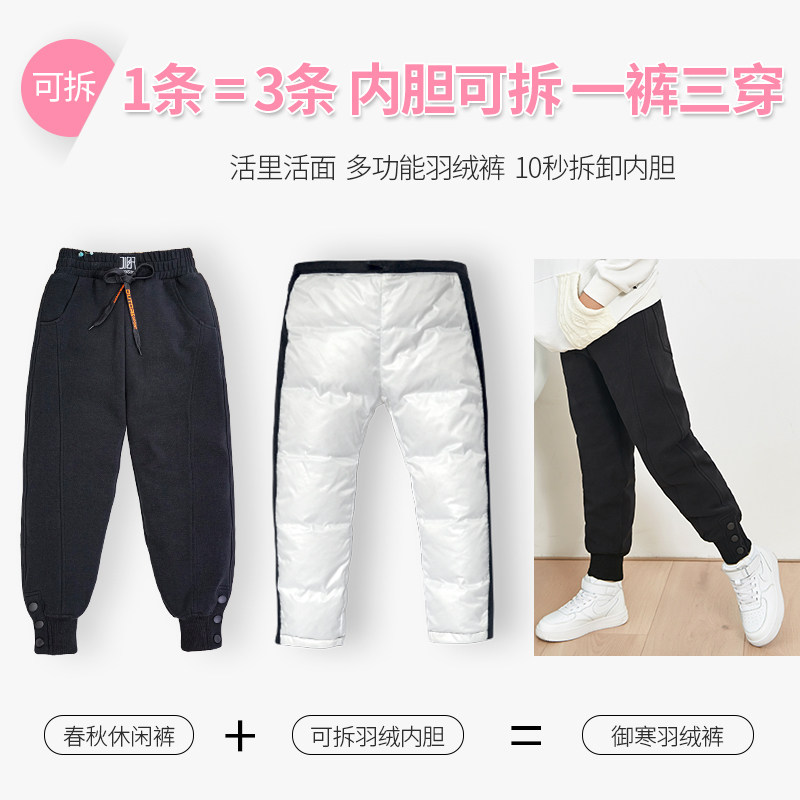 Штаны для мальчиков с пухом, съемный детский зимний спортивный вкладыш, подходит для подростков