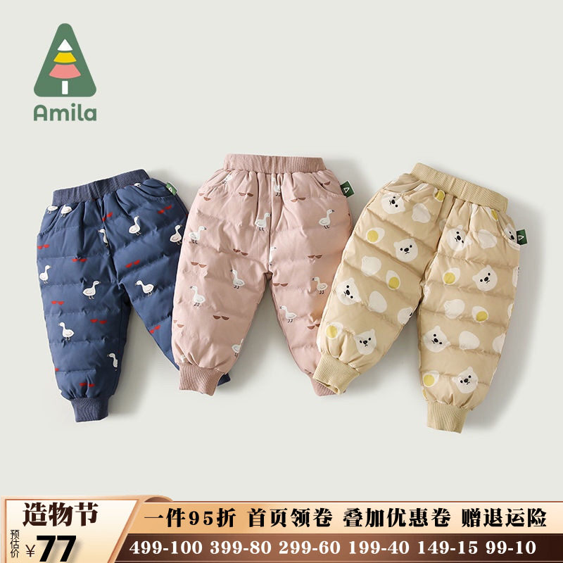 Детский пуховик для раннего возраста, штаны подходит для мужчин и женщин, детские удерживающие тепло легкие и тонкие джинсы с начесом с пухом