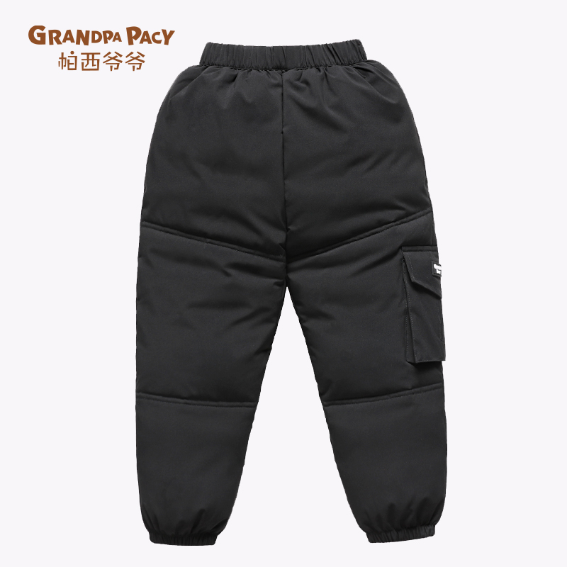 Детские зимние бархатные лыжные штаны с пухом для мальчиков, увеличенная толщина, утиный пух, подходит для подростков