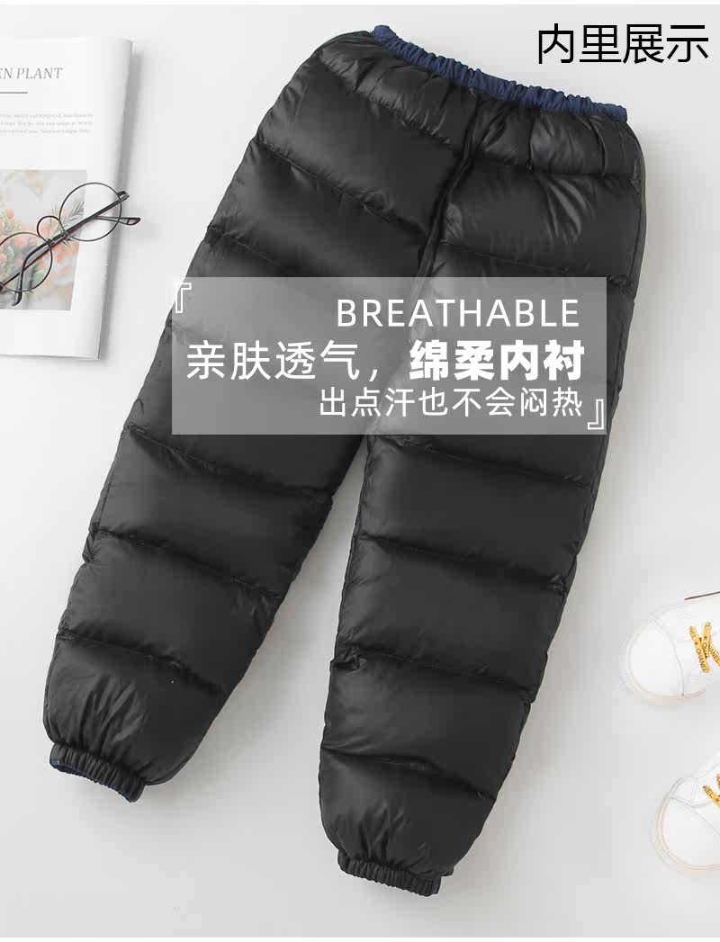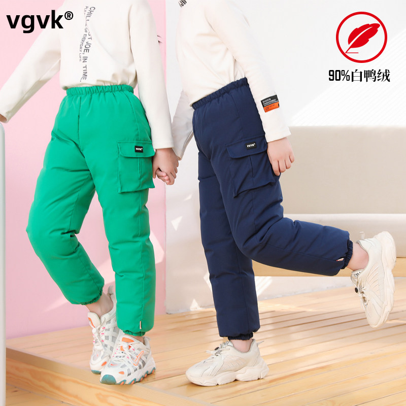 vgvk Детские штаны с пухом для девочек для мальчиков, зимние бархатные джинсы с начесом, увеличенная толщина, утиный пух, подходит для подростков