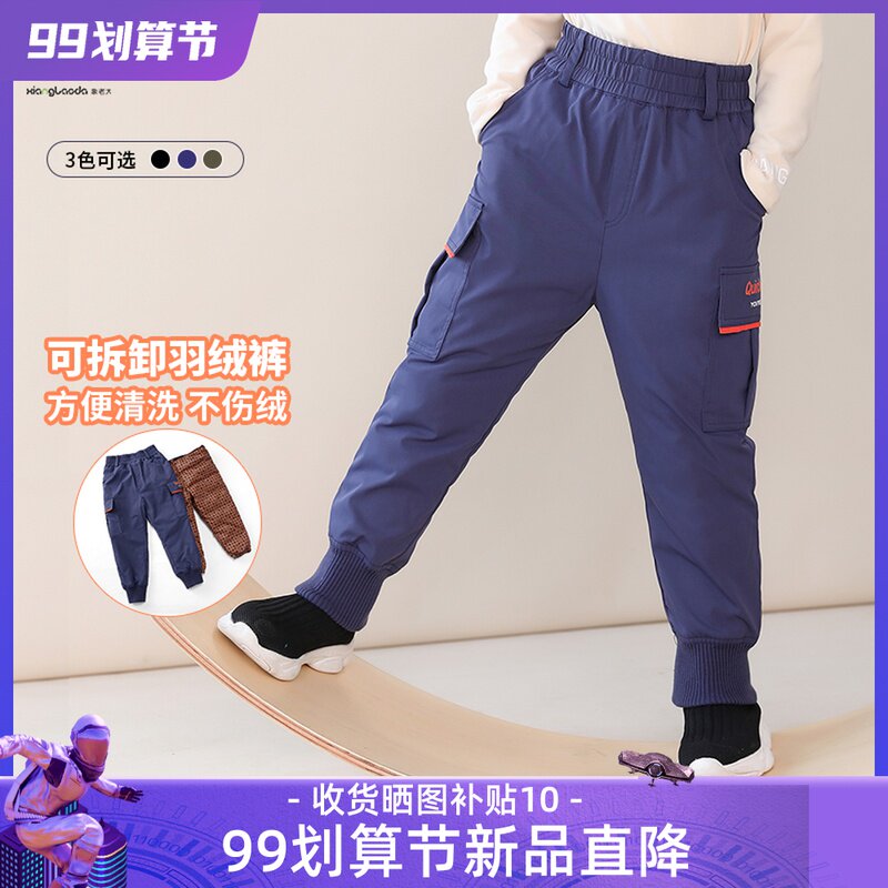 Детские удерживающие тепло съёмные штаны с пухом для мальчиков, подходит для подростков, увеличенная толщина