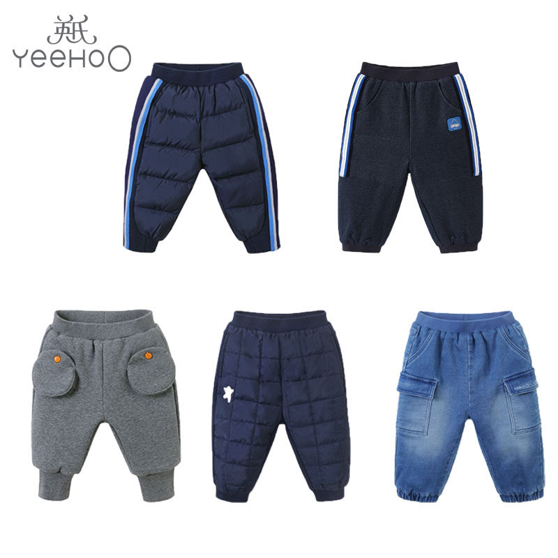Детские бархатные удерживающие тепло ветрозащитные демисезонные стеганые штаны, утиный пух
