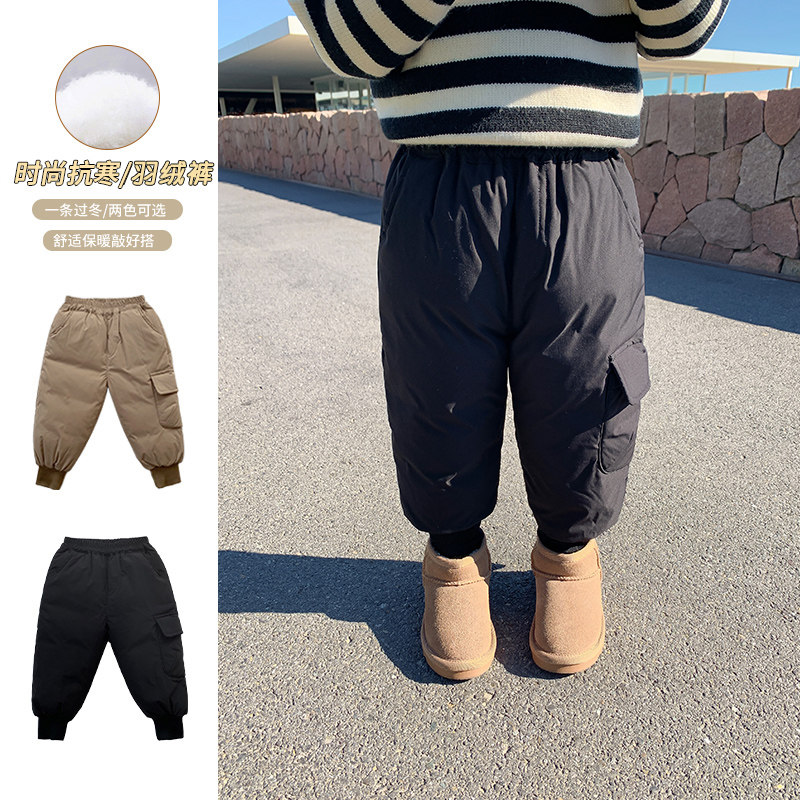 Детские удерживающие тепло демисезонные штаны с пухом для мальчиков, детский демисезонный пуховик