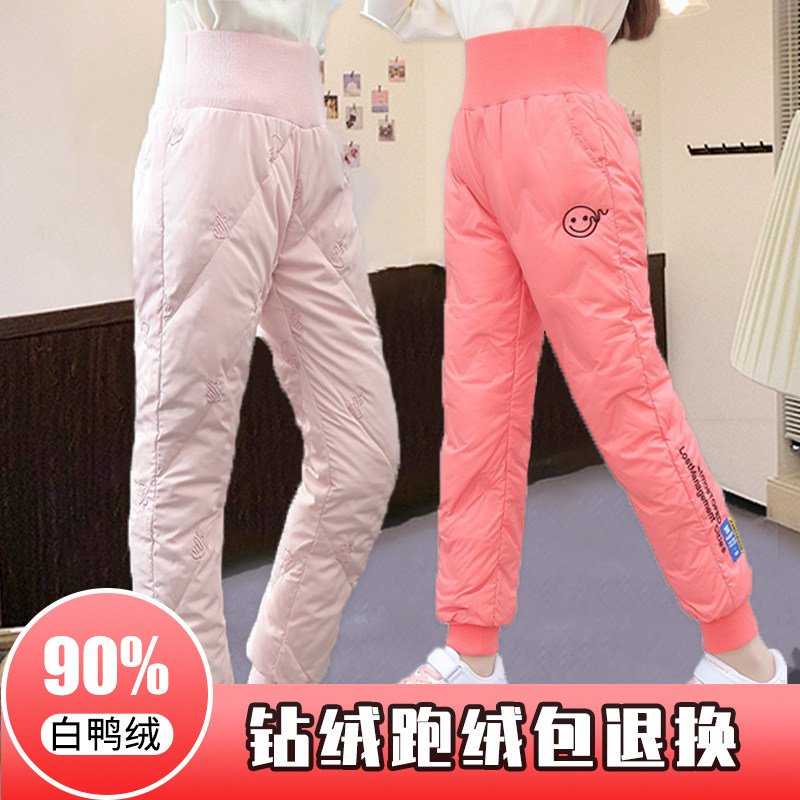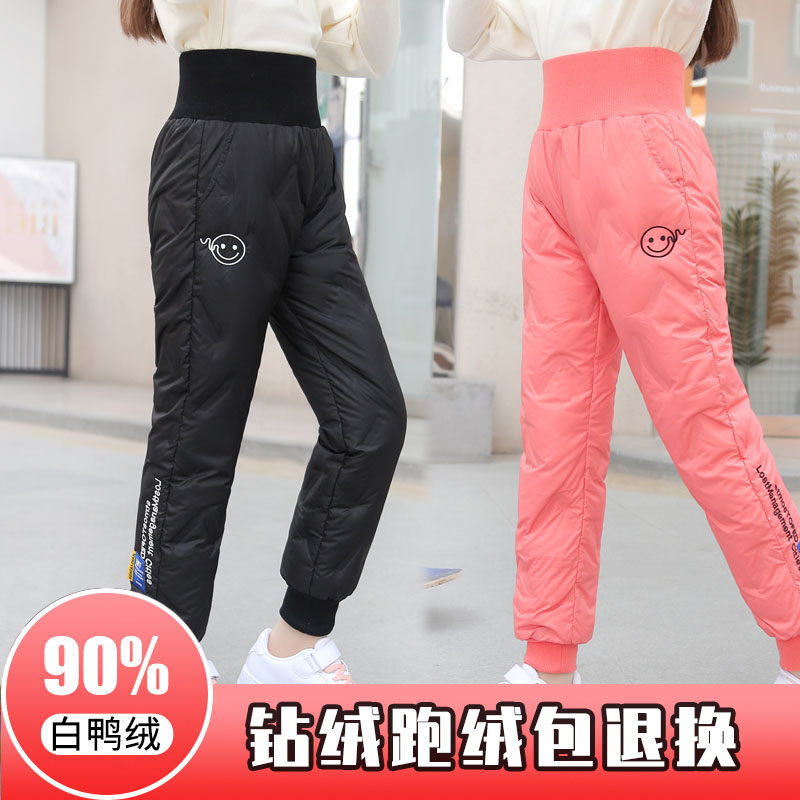 Детские зимние штаны с пухом, коллекция 2022, подходит для подростков, высокая талия, увеличенная толщина, детская одежда