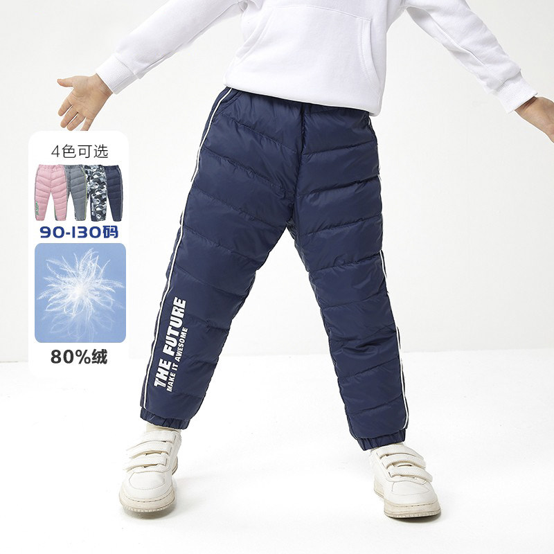 Брендовые детские зимние удерживающие тепло штаны для мальчиков с пухом, коллекция 2021
