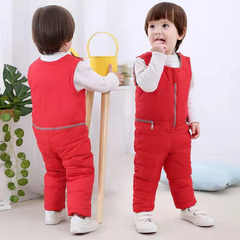 Детский комбинезон с пухом для мальчиков, детские демисезонные утепленные штаны, 1-2 лет