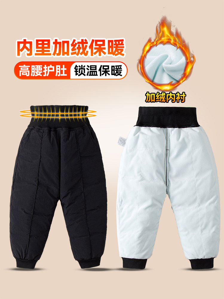 Детские зимние штаны с пухом, удерживающий тепло утепленный бархатный бандаж пупочный, 2023, высокая талия, утиный пух