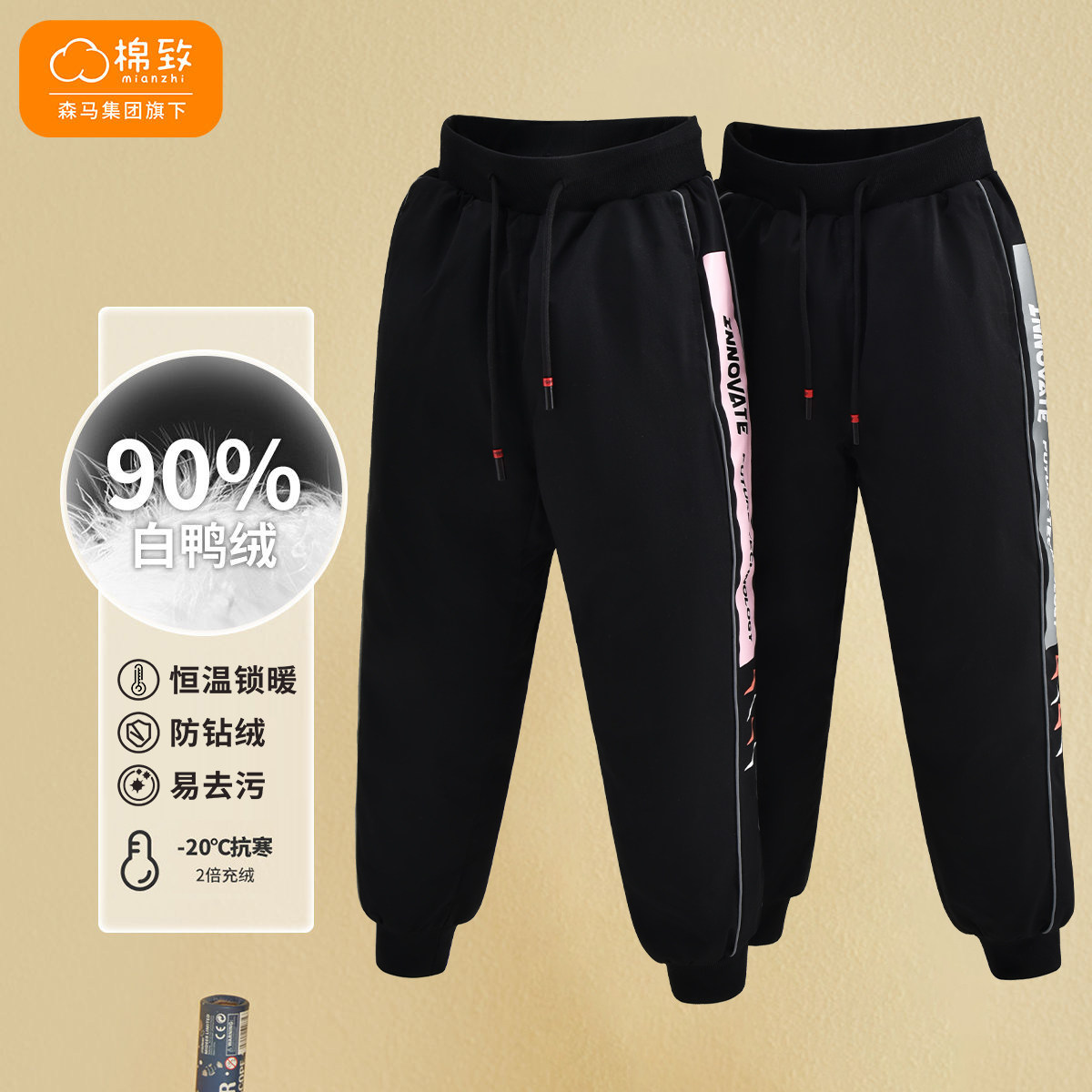 棉致 Детские демисезонные удерживающие тепло штаны подходит для мужчин и женщин с пухом для отдыха, детская одежда